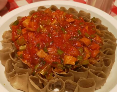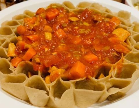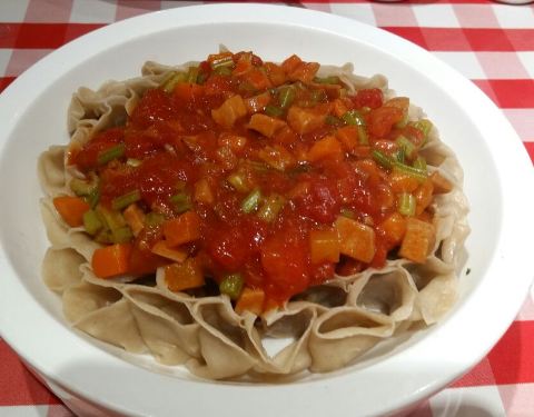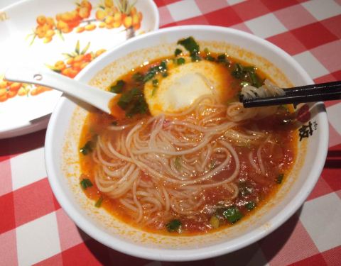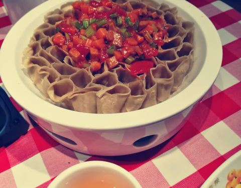 - 餐厅还比较大,西红柿浇汁莜面,酸酸的太好吃了,黄米凉糕吃起来糯糯的,微微的一点甜味,不腻