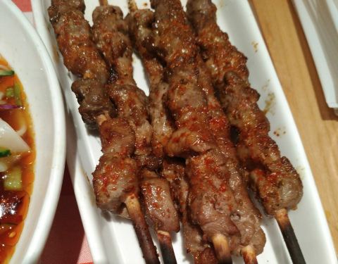 这家是全国闻名的连锁店,西北民间小吃,他家的特色菜品有烤羊肉串,西北面筋,凉糕等,羊肉串烤的真好,外焦内嫩,大块肉,汁水很多!每次必点!