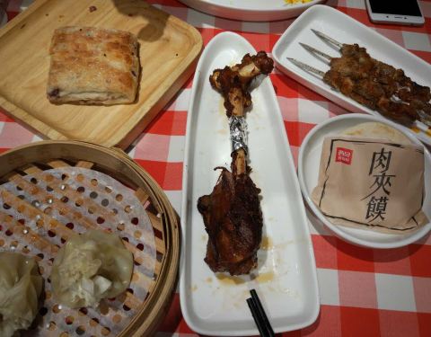 以前在江宁金鹰吃过,今天带孩子去,孩子很喜欢招牌筱面,不辣的羊肉串和羊小腿也很不错。25分钟的上齐全部菜肴的承诺也让人耳目一新,还有肉夹馍忘记拍照了,下次吧!!!