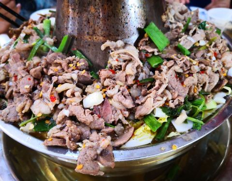 穆老九在宋城美食街是神一样的存在,以牛羊肉火锅为主,其他炒菜焖锅之类的菜品也很丰富。他家大厅很大,大大小小大概30余桌,每个桌子中午到晚上可能要翻到四次台甚至更多,据说是滁州火锅第一,不知指的是客流...