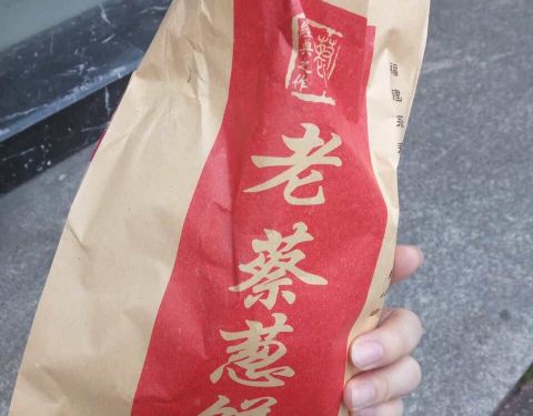 手工现做木炭烤制,刚出炉热腾腾,香味四溢,肥瘦均匀,口感独特。店铺在同利肉燕老铺斜对面,当地人说,吃同利肉燕就着老蔡葱饼,口味绝配。