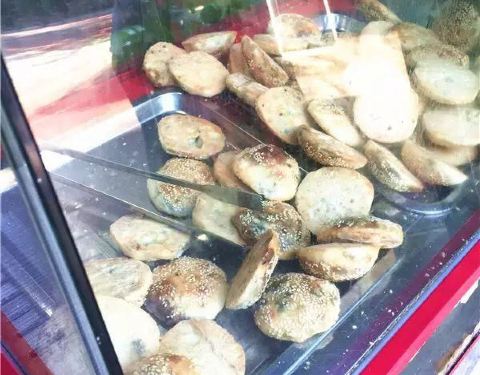 这家店,是排到断腿也要去吃的一家店,小小的店面里装着老远就能闻到香味的葱饼,路过的很难控制住自己不去买,人家的还是烤炉的明火烤的哦!一炉可以出十多个,如果能吃到刚出炉的,那你运气实在是很好啊!外皮还咔滋咔滋脆的