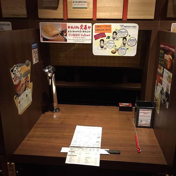 - ...,声音越大,代表越好吃,为了防止影响其他的品尝拉面,就弄成这样一格一格,也是一兰拉面的一个特色实用