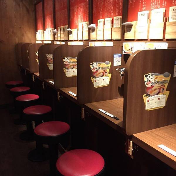 1.无论你1个人来,4个人来,还是10个人来,都是一个一个小区域吃拉面。据说这样是因为日本人吃拉面喜欢发出声音,声音越大,代表越好吃,为了防止影响其他的品尝拉面,就弄成这样一格一格,也是一兰拉面的一个特色。