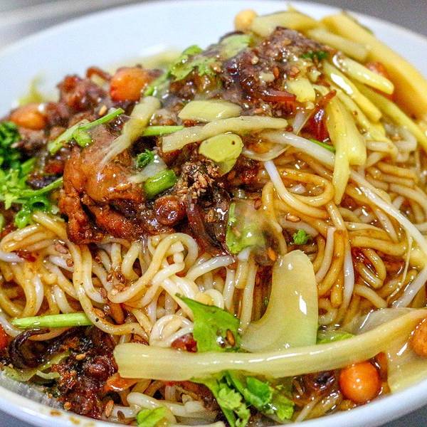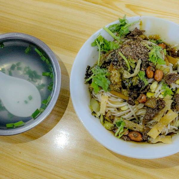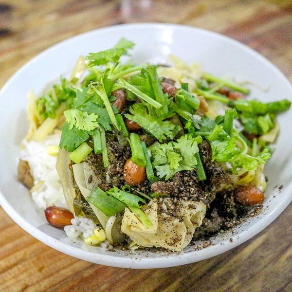 想吃正宗海南粉的话,找到新民西路上这家“亚妹”海南粉店就对了。据老街坊说,上世纪50年代,潘亚妹的父亲就挑着担走街串巷卖海南粉,她15岁起就跟着父亲学习制作海南粉。卖海南粉的亚妹,如今已是74岁高龄的阿婆,早上过来的时候可能会在店里,但大多数时间已经交给她的女儿打理。正宗海南粉的做法是以细米粉为主料,配上酸菜、香菜、黄豆芽、牛肉丝、黑芝麻、花生仁等配料,再淋上一层秘制竹笋调味汁。吃前食客要自己把粉搅拌均匀,可以根据口味偏好再添点辣椒酱。海南粉一般在早餐的时候吃,亚妹家6点开门营业,每天卖5箩筐,卖完就打烊,所以要是下午逛到发现打烊了不要觉得意外,因为生意实在是太火了。