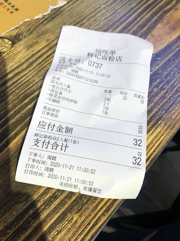 IFS几百米的距离 可以步行过去 11点到的人不算多 黄色app里面有团购 下单到拿到面才11分钟 算是很快了 里面外面都有位子左边是榨菜皮炒肉拌粉 右边是牛腩粉 都是选的微辣 辣度左>右 虽然本不能吃辣星人还是觉得辣 但味道真的真的真的很不错这是盐? 不要骗我硬是呲着牙把它们吃完了 真的好吃