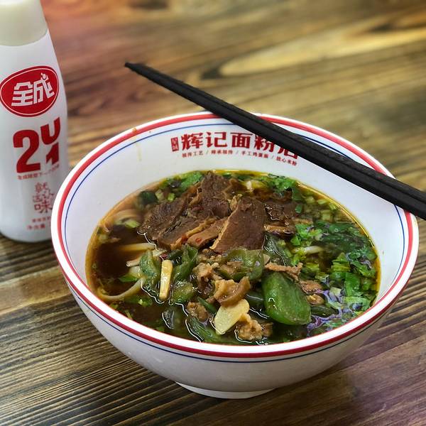 ✨辉记面粉店✨苏家巷粮食厅对面 在长沙的第一顿嗦粉找了酒店附近的面粉店 在黄兴路步行街的小巷子里 很干净的小馆子 干拌牛肉粉+荷包蛋 超级喜欢拌粉而且这家还是我钟意的扁粉 入口很有嚼劲 一口一口嗦得停不下来调味也是蛮好的 可以自己加辣椒油 还有榨菜、酸豆角和雪菜可以任意添加 汤粉也挺不错的 去长沙嗦粉可以试试这家 不是什么网红店但感觉很实诚