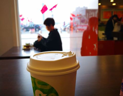 大清早返程,早饭选择在火车站附近吃。火车站里面没有吃的,就选在离火车站入口最近的德克士解决早饭。 德克士这个位置实在是好,咋个肯德基没有挤进来呢? 点了两杯豆浆,一个汉堡,一个鸡柳卷,刚好50元。汉堡和鸡肉卷都没有肯德基的好吃,豆浆比肯德基好喝[呲牙] 吃着早饭,窗外的红旗飘扬的很好看。
