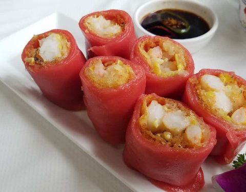 - *鲜虾肠粉*粉皮薄,虾肉多,酱油味道甜甜的。里面还挺大的,点餐下单是自己在桌子旁边的小屏幕点实用