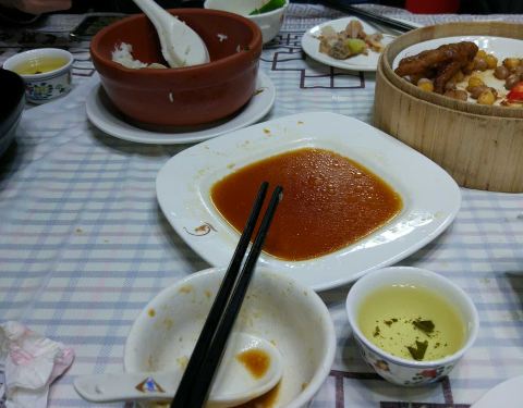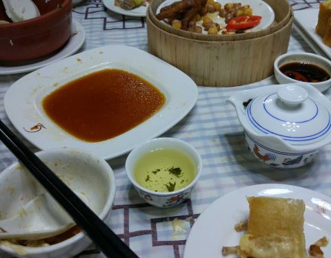 这家的卫生间在大厦里,很旧,地滑。喝茶总要去厕所的嘛,有点儿影响食欲。