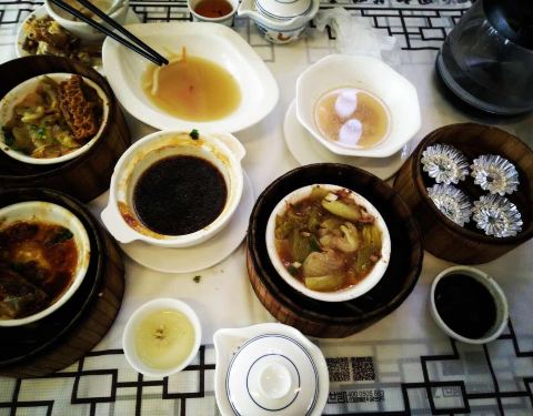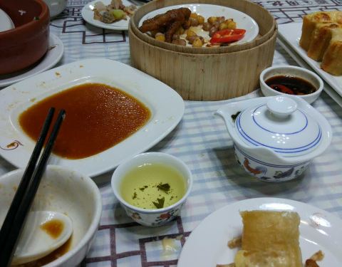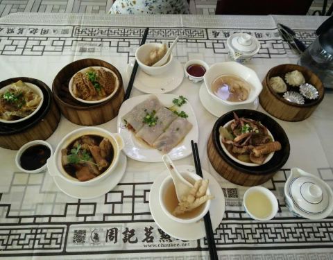 【Location】祖庙百花总汇0101潮流站四楼,一楼的麦当劳甜品站旁边有电梯直上。 【Service】通常周末都很多人需要等位。里面还挺大的,点餐下单是自己在桌子旁边的小屏幕点。这家店主要就是喝茶吃点心的,全天侯都可以,满足广东人喜欢喝茶的需要。 【Food】*XO酱萝卜糕*萝卜糕切成正方体,煎香后加入XO酱拌炒,就是辣椒放多了有点辣。*鲜虾肠粉*粉皮薄,虾肉多,酱油味道甜甜的。*凤爪*味道还行的。