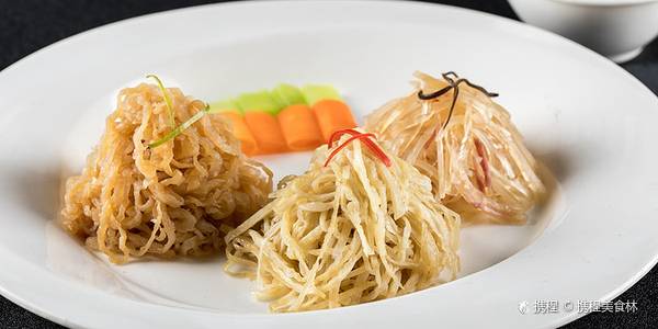 我对陕西菜理解太少,甚至每每提到这里就是泡馍、凉皮和让我难受的面条,这次我横了心要多一些,陕西菜擅长制作海鲜干货,冬天浓汤夏季清汤等道理。鱼脍,用肉皮、鸭掌、凤爪等长时间蒸制再凝固,晶莹剔透无杂质...我对陕西菜理解太少,甚至每每提到这里就是泡馍、凉皮和让我难受的面条,这次我横了心要多一些,陕西菜擅长制作海鲜干货,冬天浓汤夏季清汤等道理。鱼脍,用肉皮、鸭掌、凤爪等长时间蒸制再凝固,晶莹剔透无杂质就是一种技术活;三皮丝里面海蜇皮、鸡皮、猪皮一起切丝混合凉拌口感各异;麻皮猪手,先焯水后卤再浸泡最后炸酥,软烂而外皮酥脆;金钱海参,蛋皮裹海参再灌蛋黄茸蒸制,费事费力;羊臂臑,陕西大菜之一;秦韵虾球,高品质海虾采用焦熘手法,外脆里嫩;糯米炸糕很有意思,按一个小酒窝倒进去一勺子冰激凌口味出奇的好,撑死也吃了两个。
