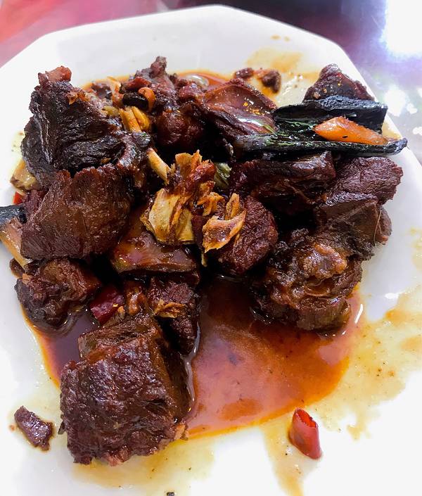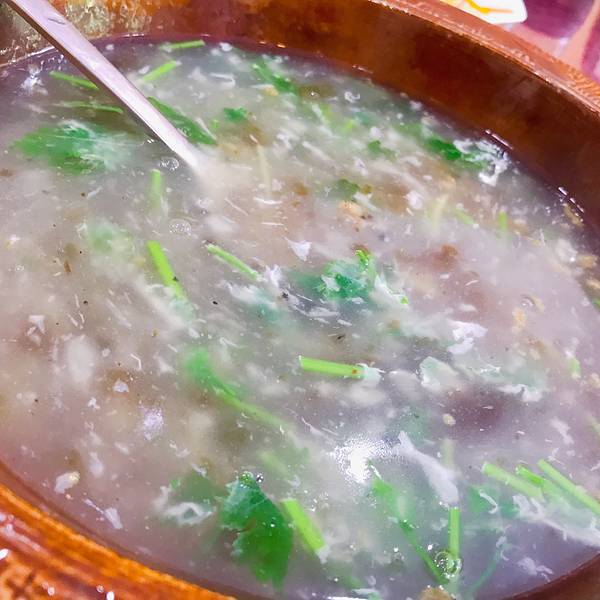 - 咸的桃胶汤,+了胡椒,相当好吃,上了两锅都吃完。当地的什么耳,像木耳炒鸡蛋,比木耳脆,好吃滴