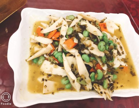 葛根啥的?酸酸的,大部分人爱吃,我不喜欢咸的桃胶汤,+了胡椒,相当好吃,上了两锅都吃完当地的什么耳,像木耳炒鸡蛋,比木耳脆,好吃滴红烧肉,哪里都有的吃,据说是野山猪,太多菜了也没吃出道道来土豆,我...葛根啥的?酸酸的,大部分人爱吃,我不喜欢咸的桃胶汤,+了胡椒,相当好吃,上了两锅都吃完当地的什么耳,像木耳炒鸡蛋,比木耳脆,好吃滴红烧肉,哪里都有的吃,据说是野山猪,太多菜了也没吃出道道来土豆,我觉得一般,人多凑菜数可以鸡是好鸡,量也大虾就不是这里特色啦跟红烧肉有点重复了,不过这里的笋是一定要吃的重点推介,石蛙,感觉比牛蛙小多了,所以上来要抢,不然只吃到点碎屑这是清淡烧法整桌桃胶外这个最最好吃,兔肉,但也好贵的很大的扁鱼只知道吃,菜名都叫不上来啊!位于荫山街交通枢纽那很醒目,这里上上下下好几家,普遍较贵,但山珍野味也不是哪里都能吃到的,又在风景区里面,租金可想不得知。