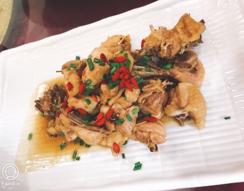葛根啥的?酸酸的,大部分人爱吃,我不喜欢咸的桃胶汤,+了胡椒,相当好吃,上了两锅都吃完当地的什么耳,像木耳炒鸡蛋,比木耳脆,好吃滴红烧肉,哪里都有的吃,据说是野山猪,太多菜了也没吃出道道来土豆,我觉得一般,人多凑菜数可以鸡是好鸡,量也大虾就不是这里特色啦跟红烧肉有点重复了,不过这里的笋是一定要吃的重点推介,石蛙,感觉比牛蛙小多了,所以上来要抢,不然只吃到点碎屑这是清淡烧法整桌桃胶外这个最最好吃,兔肉,但也好贵的很大的扁鱼只知道吃,菜名都叫不上来啊!位于荫山街交通枢纽那很醒目,这里上上下下好几家,普遍较贵,但山珍野味也不是哪里都能吃到的,又在风景区里面,租金可想不得知。