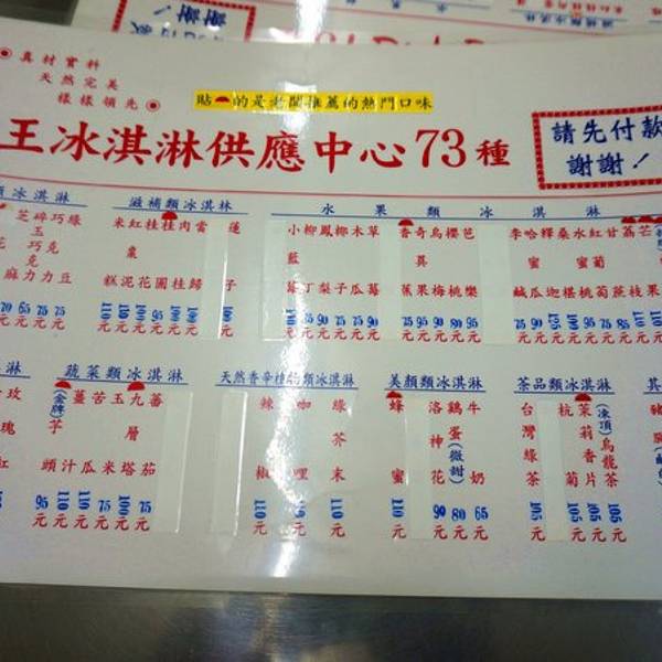 西门町的雪王冰淇淋是家开了60多年的老店,听人说口味一共整整73种,你能想象到里面麻油鸡,苦瓜,牛肉,猪脚,肉松等这些重口味哦的冰淇淋么?这里的口味没有你吃不到只有你想不到,我只是尝试了九层塔和芥末口...西门町的雪王冰淇淋是家开了60多年的老店,听人说口味一共整整73种,你能想象到里面麻油鸡,苦瓜,牛肉,猪脚,肉松等这些重口味哦的冰淇淋么?这里的口味没有你吃不到只有你想不到,我只是尝试了九层塔和芥末口味,麻油鸡,猪手等口味等你来尝,老板很热情的给我们推荐,让我为这家店着实打了高分!最后走的时候还打包了一部分,老板娘问我要多久后吃,如果时间久的话就给冻得硬一点的,打包的盒子上都会写口味,最还告诉我要先吃口感比较淡的凤梨再吃肉松最后吃较甜的红豆。