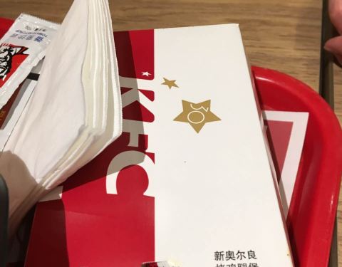路过这家肯德基,忙里偷闲吃点东西。愤怒的华夫饼挺有创意,馅料是蛋黄,表皮撒上了肉松,这种组合味道竟然毫无违和感,唯一缺点是肉松粘性不够,容易四处飞溅。蛋挞还是一如既往的香甜,再搭配一杯类似果粒橙的茶饮,最后打包一大盒黄金鸡块,满足!