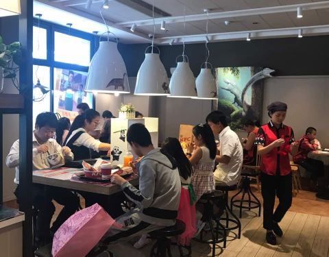 这家肯德基几乎都是自助点餐了,有的顾客想人工点也被服务员尽力推荐自助点,这样也好不用排队。买了新品黄飞红肯大大鸡排,还有草莓圣代。这个鸡排比之前的藤椒鸡排好吃,更嫩,更香,也不辣。圣代就差强人意了...