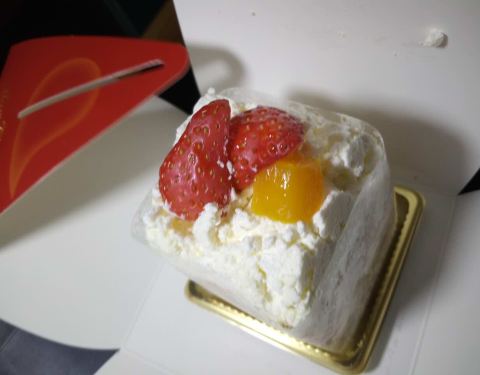 好利来的万达店生意简直不要太好,新出的草莓蛋糕都快要卖爆了,抱着尝鲜的态度买了两份附有玉米的蛋...
