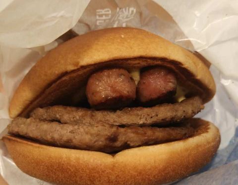 幸好有麦当劳,广告上这么大个的汉堡,到手就出这个样子。。。。。。