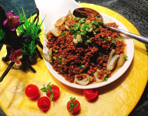 ...的扇贝、肥美多肉的海捕梭子蟹、新鲜海蛎子(小号的生蚝)青岛美食鱼水饺全家福,其中墨鱼水饺最好吃
