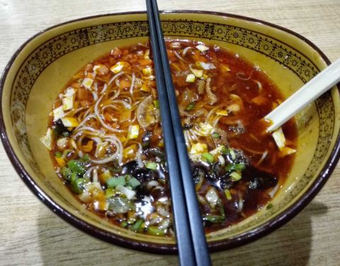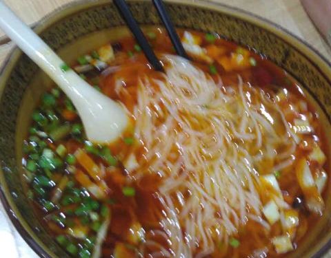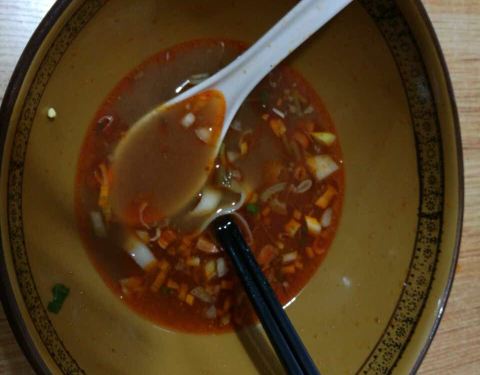 - 给人感觉不错,就餐前有碗面汤之类的喝的,点的臊子面,看上去很诱人,一吃味道不错,挺开胃的,唯一...