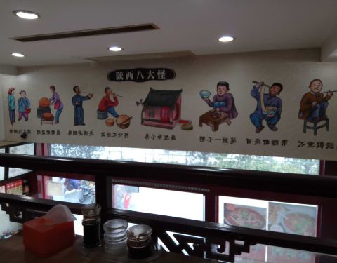 环境简洁干净,给人感觉不错,就餐前有碗面汤之类的喝的,点的臊子面,看上去很诱人,一吃味道不错,挺开胃的,唯一不好的是面条太细了,和以前在其他地方吃的不一样!