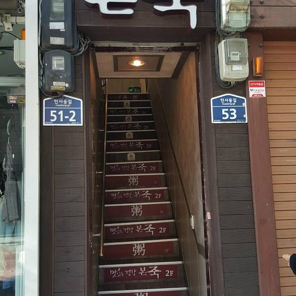 “本粥”是韩国最有人气的主营粥的连锁店。仁寺洞的分店就在仁寺洞的主街上,很小的一个店面,路过时要注意…