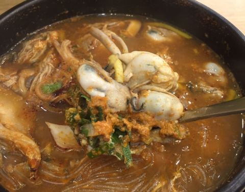 本粥(본죽) 是韩國第一的連鎖型粥店 韓國國內 有超過1000間的加盟店 選擇琳瑯滿目 除了甜品南瓜粥 紅豆粥等 還有多款韓式傳統健康粥 包括 蔘雞粥 鮑魚粥 風味蟹肉起司粥 泡菜章魚粥 ⋯創意粥品 我們 點了薊菜粥 加一粒糖心蛋 加料牡蠣鍋 統營特產的牡蠣 個頭碩大 湯頭鮮美 白飯 小菜 真不錯吃 ~