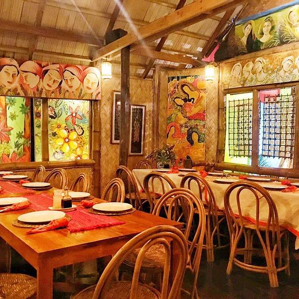 Kalui Restaurant——米其林一星餐厅!(公主港市区) 网上公主港地区排名第一的网红餐厅。据说这是西班牙艺术家老板开的菲式庭园风格餐厅,餐厅艺术氛围极浓,竹子挂辣椒的门帘、木雕飞鱼的吊顶、盘子并排的屋檐,还有随处可见的艺术画作,餐厅像一个艺术展示空间,让你在用餐的同时,还能欣赏艺术品。这里的海鲜大餐味道也很棒,最喜欢的是芒果汁,一杯接着一杯,根本停不下来。由于餐厅人气太旺,所以一定要预约才有位置。提醒一下,进门就餐需拖鞋。