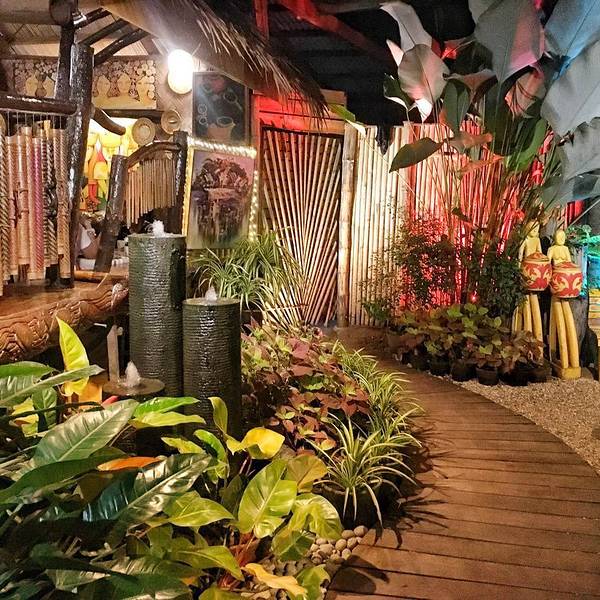 - 据说这是西班牙艺术家老板开的菲式庭园风格餐厅,餐厅艺术氛围极浓,竹子挂辣椒的门帘、木雕飞鱼的吊...
