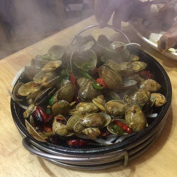 慕名而去,瓜子,水果,小米粥,米饭,爆米花,汽水饮料都免费,欠揍的茄子,酱骨头,干炒鸡,原味花蛤口味不错,保质期7天的泰山原浆啤酒口味也很好!