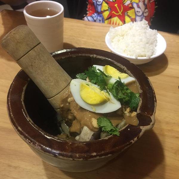 原本打算去泰安地下大裂谷的,醒的也不算晚,可惜从早上一直到中午都在下雨,也不见小。大哥说下次再说吧,实在想看北京也有,踏实休息,吃完饭回家。我这么听话继续睡觉了。昨晚回来的路上发现的店,可惜昨儿已...原本打算去泰安地下大裂谷的,醒的也不算晚,可惜从早上一直到中午都在下雨,也不见小。大哥说下次再说吧,实在想看北京也有,踏实休息,吃完饭回家。我这么听话继续睡觉了。昨晚回来的路上发现的店,可惜昨儿已经关门了,今天必须补上。泰芒了超大杯,30元/杯。超级爽,芒果汁+奶油+芒果粒+芒果沙冰+4片超大片芒果片,一路拿着去吃饭,感觉得有2斤重。这家店也是特色鲁菜店,分店也挺多的,我们吃的这家就在煎饼卷大葱边上,必须还是走着去啊。好吃的地儿总是排队的(金牌酱棒骨7.9元/块,还有馋狼脊骨4.9元/块)。翻桌超快的。每桌必点,欠揍的茄子,14元/份,用麻将拌的,连着鸡蛋一起捣碎了吃,实话说太糊嘴了,茄子应该跟蒜是绝配啊,竟然不放,哎,失败。继续大五谷煎饼,1元/张。石锅花蛤,18.9元/份,超级好吃,颗颗入味。干锅土豆片,18元/份,满嘴的孜然味儿,香啊。我这算不算黑亲老公的节奏。