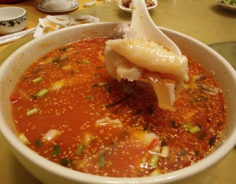 綦河春乃是经营北渡鱼的老店中最有名的一家。自从渝黔高速公路建成之后,老北渡镇那一带的北渡鱼店基本上都搬进了綦江城内。高速公路下道后往城区方向过了转盘就能看到綦河春的招牌。以前在綦中那条街上一排,现在搬到开发区去了。味道确实不错,大家都很喜欢酸菜鱼,特别的嫩,比麻辣鱼好吃的多。鱼的做法依然是麻辣、番茄、酸菜经典的三种。味道自然还是地道。只是离开了临江的环境,总会让人还是留恋当年老店的感觉。