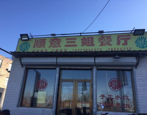 顺意三姐餐厅,位于顺义道与朝阳路交口处,很好找,一般去他家吃饭都是开车去,菜量大上菜快,两个包间,菜的味道很赞!值得来尝尝!