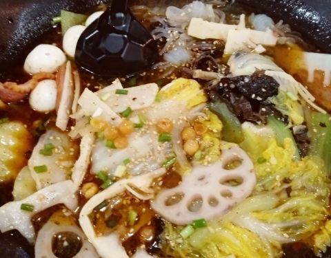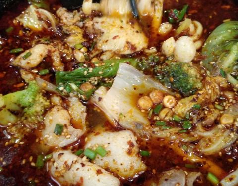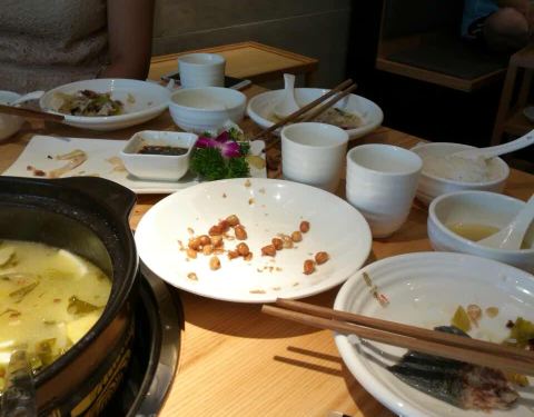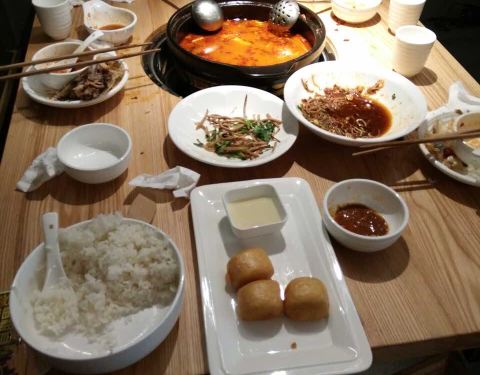 吃到一半停电了,不过还是蛮好吃的.微辣的鱼感觉还不错,就是鱼比涮菜好吃多了,冷菜口水鸡也不错