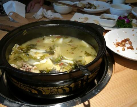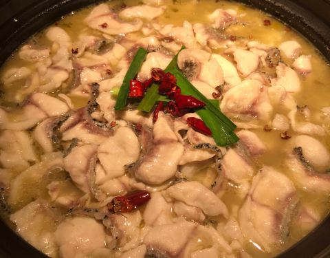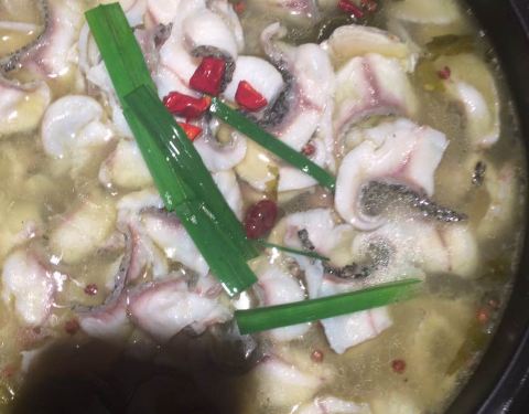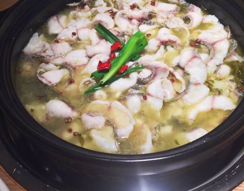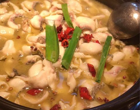 鱼肉白皙嫩滑,酸菜鱼锅鲜爽美味。