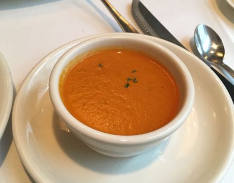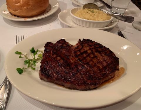 中国餐厅周#7~~号称帝都四大扒房之首。我感觉和上次来相比,菜价没有涨,菜品保持原来的水准,但服务质量下降了。 这是这次餐厅周最贵的一餐。他家划不划算,真不好说。他家的味道挺不错的,摆盘也不花哨,可以说是美式西餐的典范——牛扒的品质不用说了,本身就是看家菜,烤肉技术也好,不用花里胡哨的各种调味汁,海盐和胡椒就能带出肉的原香。番茄汤、配菜土豆泥都很好吃。他家的菜量也很足:美国一级肉眼,一给就是一磅;珍宝蟹饼几乎就是全蟹肉;就连送的餐包都够三四个人吃的——这顿饭800多,除了贵,口味方面倒没啥毛病。划算的方面就是——如果没有活动,一块牛扒就800多,等于这顿的开胃菜、汤、甜点以及餐酒都是送的。 [服务]服务方面,有不少槽点:1、我要三分熟的牛扒,做成了五成熟;2、上了牛扒之后,服务员没有主动询问我是否需要现磨黑胡椒;3、整个用餐过程中,没有一个服务员询问我的用餐感受;4、上甜品之前,并未清理餐桌上的面包屑——这让我觉得15[%]的服务费有点白花了。当然,好的方面也有:1、主动帮我打包未吃完的餐包;2、送我一张500的代金券。