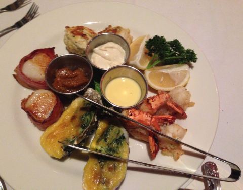 - 牛排味道非常惊艳,肉质鲜美,分量很大,一个人都吃不了,两人份600多一份,海鲜拼盘也600多,...实用