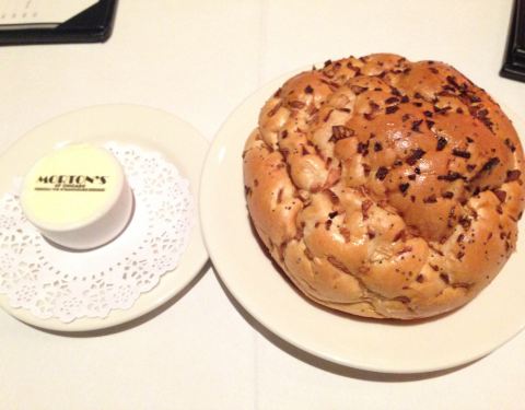 『莫尔顿牛排坊』 一顿美好的美式早午餐从餐前面包开始,莫尔顿家的餐前面包个头比较大,上来是一个完整的面包,面包上撒了一些坚果碎作为点缀,现烤的面包热气腾腾,内部松软,搭配奶酪是最好的吃法。 ...