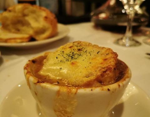 临时预约来吃饭,朋友7:30就到了,我送完最后一个蛋糕8:30可算坐上桌从来没过的节疫情当前居然有了仪式感从1月20日之后第一次用BB霜。 之前来这家吃过,印象实话说一般,没想这次留下了极好的印象珍宝蟹肉锦绣...临时预约来吃饭,朋友7:30就到了,我送完最后一个蛋糕8:30可算坐上桌从来没过的节疫情当前居然有了仪式感从1月20日之后第一次用BB霜。 之前来这家吃过,印象实话说一般,没想这次留下了极好的印象珍宝蟹肉锦绣杯^蟹肉超级良心餐前面包^由于太久没吃到热面包,抹上黄油一口下肚的瞬间差点泪目烤瑞士奶酪洋葱汤^和|龙虾汤^都很好喝,龙虾汤可以看到一个大蟹钳纽约西冷牛排^心心念念的牛排终于吃到口,一定要大喝几口红酒烩牛肉意大利宽面^太爱了每一根面条都裹满酱汁,一口都不想浪费。配的小菜也很棒,感觉不到是一天复工。吃得超级开心,两瓶葡萄酒轻松下肚。 当晚大概有10桌客人,每桌都在小声聊天,莫名有一种美国往事里餐厅的感觉,服务也很贴心,侍酒师赞。