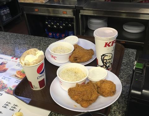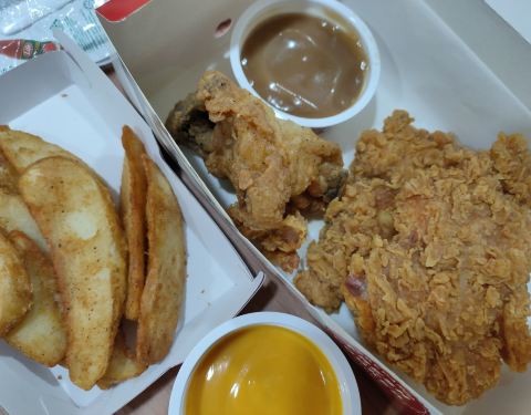 到吉隆坡,接车司机说一定要试试他们这边的KFC餐厅,与大陆完全不一样。特地留了时间找到这家KFC,点了全家桶套餐49马币。东西比较简单,就是鸡块,味道呢也感觉很普通。吃到个芝士球,还不错。价格比国内是便宜点。到吉隆坡,接车司机说一定要试试他们这边的KFC餐厅,与大陆完全不一样。特地留了时间找到这家KFC,点了全家桶套餐49马币。东西比较简单,就是鸡块,味道呢也感觉很普通。吃到个芝士球,还不错。价格比国内是便宜点。