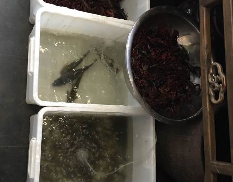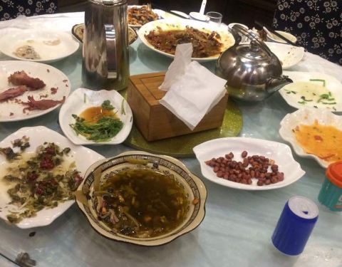 这家菜馆的菜很新鲜、看实样点菜很方便。西塘当地老板很热情,下次还来。