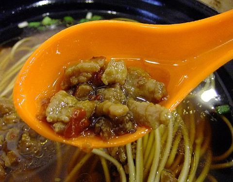 继续探访人气店,这家店在某网站上人气不错。虽然网上收索结果就是这家不是总店。 但是贵在离公司比较近,中午步行半小时就能到!天气还不错,木有下雨!天气预报说有雨,还一直担心,要不要带伞! 到店的时候,店内顾客蛮多的,找了个位置坐下,选择的还是辣肉面! 【辣肉面】面条口感不错咬在嘴里有喜欢的质感,辣肉虽然小,但口感却很也不错。