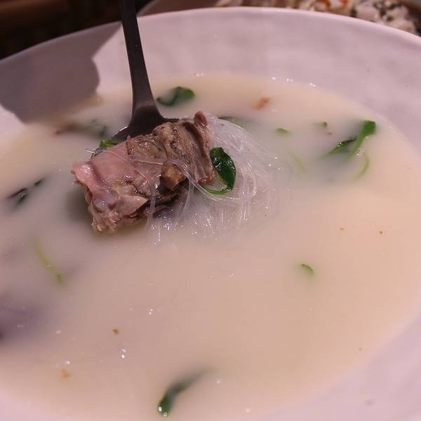 酸奶沙拉这个非常好吃,女孩子的最爱,本身不是很喜欢吃蔬菜,所以点了这个酸奶水果沙拉,酸奶上有大颗的草莓和车厘子,车厘子很甜,还有一层的碎坚果,比单纯的水果酸奶又增加了很多元素,吃起来一点都不单调,除了水果以外,还加入了蔬菜沙拉常放的冰草——既像蔬菜,又有着水果的口感,很有创意。莎家酥肘子莎莎家的招牌之一,肘子炸的外酥里嫩,外层的脆皮炸的金黄金黄的,一口下去简直酥到骨头里,满口的香酥,卷上一张薄薄的卷饼,吃起来香而不腻。麻椒龙利鱼鱼片雪白无暇,没有一根鱼刺,对于喜欢吃鱼又不喜欢摘刺的人简直不能再幸福了,可以放心大胆的整片吃下去,入口滑嫩,非常新鲜,鱼豉油的鲜香搭配麻椒微微发麻的口感,清淡的味道突显鱼肉的鲜美。蒜蓉凤尾虾每一只虾都是剥好了露出白白嫩嫩的虾肉,捏着尾巴就可以一口一个,还不用弄脏手,虾肉紧实滑嫩,微微的蒜香很提味,铺底的蘑菇也很好吃。老鸭粉丝汤汤底纯白浓郁,香浓可口,滋味鲜美,精选一年以上老鸭熬制,确保汤头香浓没有腥味。粉丝筋道爽口,不愧为餐厅经典菜品。