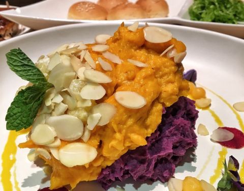 妈咪生日,提前探店订位置,服务员超好,午休时间还带我看单间选座位。菜品不错,我们吃的很欢乐! 紫薯南瓜沙拉,上来先喂手机了,拍照咔嚓嚓~造型美美哒,紫薯与南瓜结合,既营养又美味! 麻婆豆腐,算是凑...