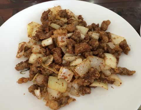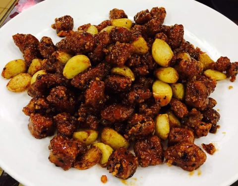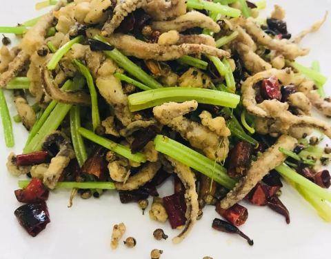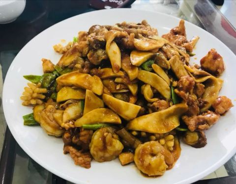 点了八珍豆腐和干煸鱿鱼须,菜量真大,而且里面内容很丰富,蘑菇,鸡丁,豆腐,荷兰豆,扇贝肉,虾仁,鱿鱼卷,看到后我就震惊了,味道真的很好,椒盐味干煸鱿鱼须天津特色菜,好吃。
