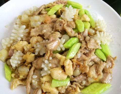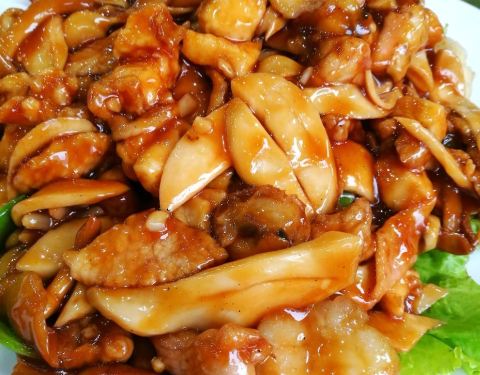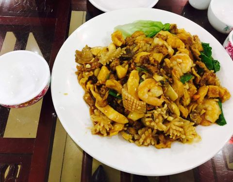 台儿庄路上大光明桥附近的一家饭馆,要说环境还是可以的,门脸算是比较大的那种,也非常醒目,内部装潢还算可以,稍显陈旧,但是卫生状况良好,大厅稍微有些拥挤,就餐的时候会觉得有些吵闹,不过还好在接受范围...台儿庄路上大光明桥附近的一家饭馆,要说环境还是可以的,门脸算是比较大的那种,也非常醒目,内部装潢还算可以,稍显陈旧,但是卫生状况良好,大厅稍微有些拥挤,就餐的时候会觉得有些吵闹,不过还好在接受范围内,并不严重,菜品方面,都是家常菜为主,推荐这家的酱爆洋白菜,炒得味道非常好,酱油放的很足,炒出来颜色有些重,但是味道很到位,鱼香鸡丝,很大的一份,鸡丝口感很嫩,整个菜的味道微甜,很好吃,孜然羊肉炒得也很少,虽然不是回民馆,但是味道一点不输给清真的口味,羊肉口感很嫩,不会很难嚼,服务方面,稍显不足,人手感觉有些不够,服务员喊不过来的感觉。 - 豆腐,荷兰豆,扇贝肉,虾仁,鱿鱼卷,看到后我就震惊了,味道真的很好,椒盐味干煸鱿鱼须天津特色菜,好吃