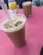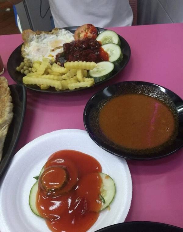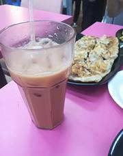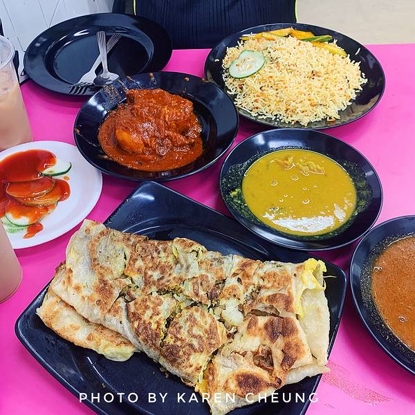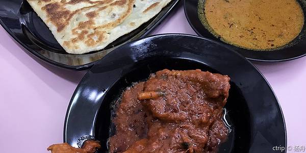 羊肉煎饼,份量很多,煎饼酥酥脆脆,包裹着满满的羊肉碎肉、洋葱和蛋,只是羊骚味有点浓。煎饼可以直接吃,或蘸咖哩酱,我觉得蘸酱更好吃一点。米饭是长长的一粒粒,类似泰国香米那种。鸡肉埋在饭里,就着姜黄饭淡淡的香气。咖喱牛肉,真的实实在在很大一块,非常有嚼劲。配浓郁的红咖喱,微辣。要说缺点就是份量太足!印度拉茶Teh Tarik,必点!有加炼乳,口感很甜,茶香味浓郁。加了些冰块,非常解暑。这样一杯印度奶茶,值得一试!以上完全够两个人的份量,个人觉得这一餐,简直对印度的好感大增,真的好吃又很划算。关于怎样点餐,建议点个饼类、加一个饭,煎饼挑牛肉、羊肉或鹿肉,米饭配鸡肉,印度拉茶一定要点。