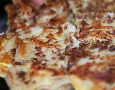 - 好多游客慕名而来,牛肉饼超大一个,饼里夹了牛肉馅还有蔬菜和鸡蛋,就是有点油,又看着菜单随便指了...